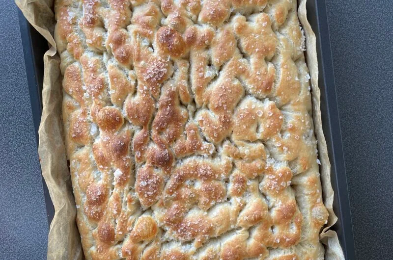 Denne oppskriften på focaccia er enkel og passer både til hverdags og spesielle anledninger, enten som tilbehør til supper og salater eller som en base for smørbrød. Du kan også legge til toppinger som rosmarin, soltørkede tomater, eller oliven.