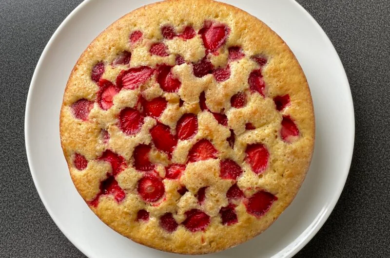 Jordbærkake er en klassisk og enkel kake med en saftig vaniljebunn og søte, syrlige jordbær. Denne kaken passer perfekt til kaffeselskap, sommerdager eller som en dessert etter et hyggelig måltid. Den er lett å lage med få ingredienser, og resultatet er en smakfull kake som både ser og smaker fantastisk. • Du kan bytte ut jordbær med andre bær som blåbær, bringebær eller en blanding av ulike typer. • Ønsker du en ekstra smakfull bunn? Tilsett litt vaniljesukker eller revet sitronskall i røren. • For en mer rustikk topping kan du strø over litt perlesukker eller hakkede mandler før steking.