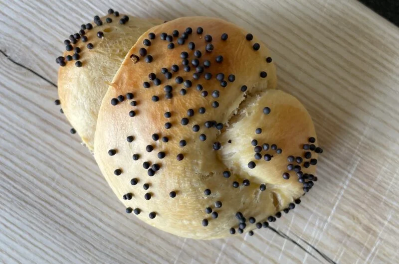 - Ha deigen ut på en melet overflate. Del opp i 12 biter. Rull hver bit til en lang remse som er ca 25-30 cm lang. Lag deretter en knute med deigremsen.
