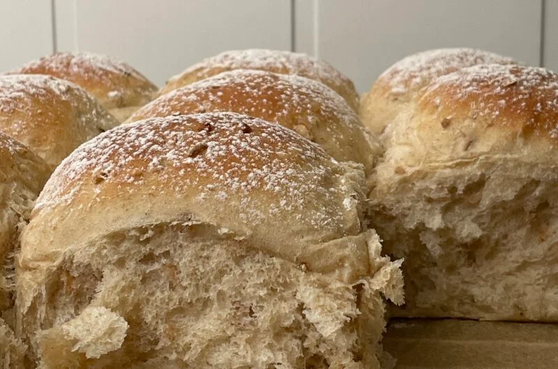 Disse rundstykkene er saftige og luftige, med en ekstra smak og tekstur fra grøpp. Perfekt for frokost, lunsj eller som tilbehør til supper og gryteretter. Oppskriften er enkel å følge, og med litt tid til heving får du 15 herlige rundstykker som stekes sammen i langpanne for en praktisk og rustikk presentasjon. Grøppen kokes raskt opp og blandes i deigen, som eltes grundig for å oppnå riktig konsistens. Med en blanding av hvetemel og sammalt mel får du en fin balanse mellom luftighet og fiberinnhold. Rundstykkene kan fryses og enkelt varmes opp igjen for å nytes ferske senere.