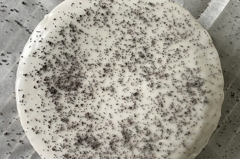 - Når kaken er helt avkjølt, bland sammen melis og vann til det blir passe tykt og ha over kaken. Dryss over valmuefrø.